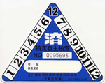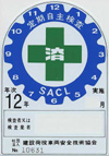 | 検査後 | フォークリフトの目立つ所に実施年月日を明記した検査済ステッカ(検査標章:下図参照) を必ず貼付する 検査結果は必要事項を記録し3年間保存する |
